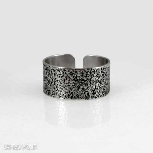 Szeroka srebrna obrączka.